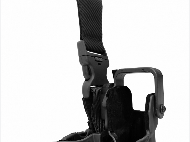 • Possui catraca rotativa, permitindo a angulação do Coldre em sua base, facilitando o manuseio da arma;
