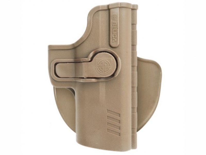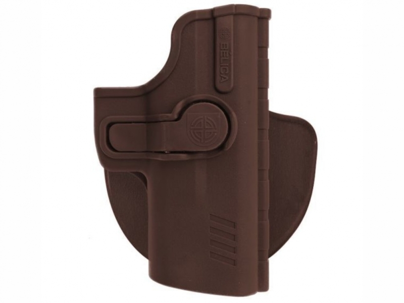 • Possui trava de segurança, que pode ser liberada no exato momento do saque da arma.