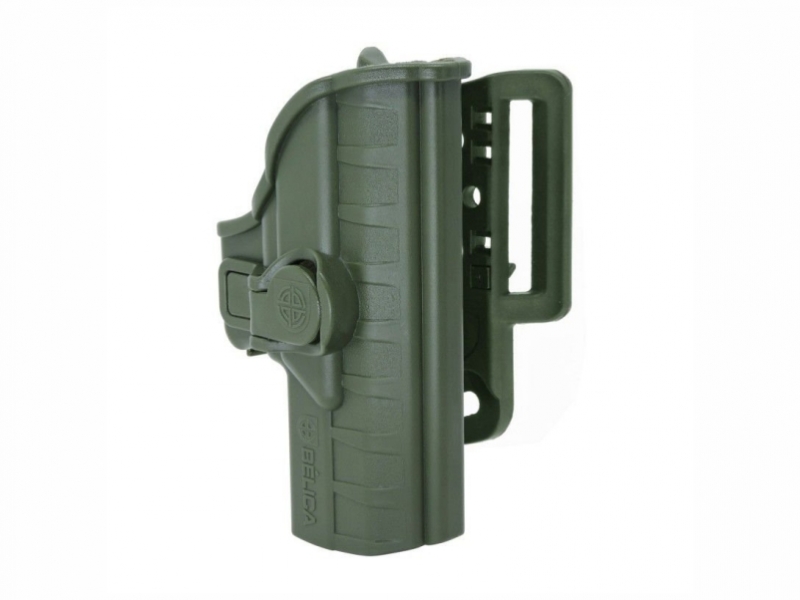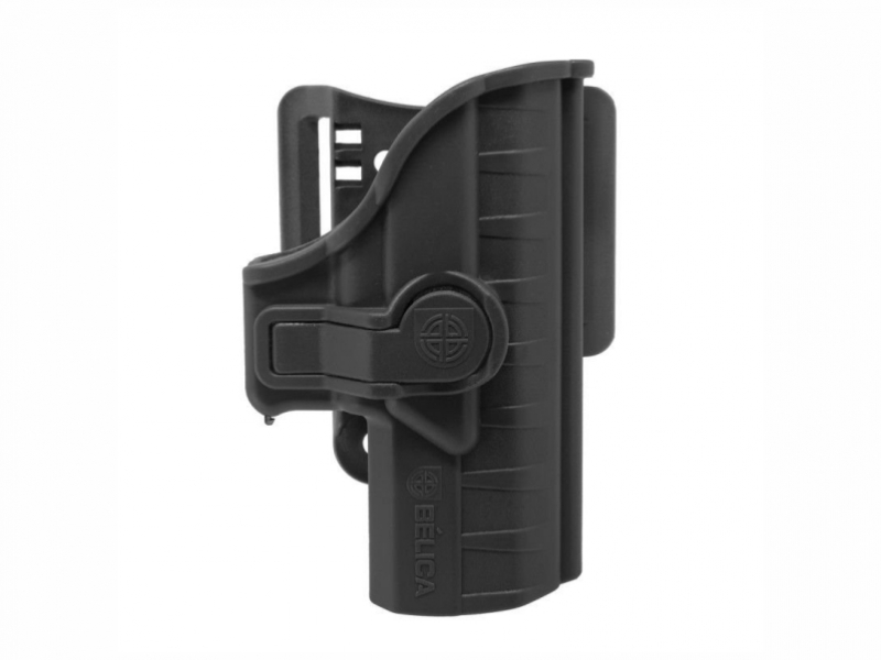- Possui trava de segurança, que pode ser liberada no exato momento do saque da arma;