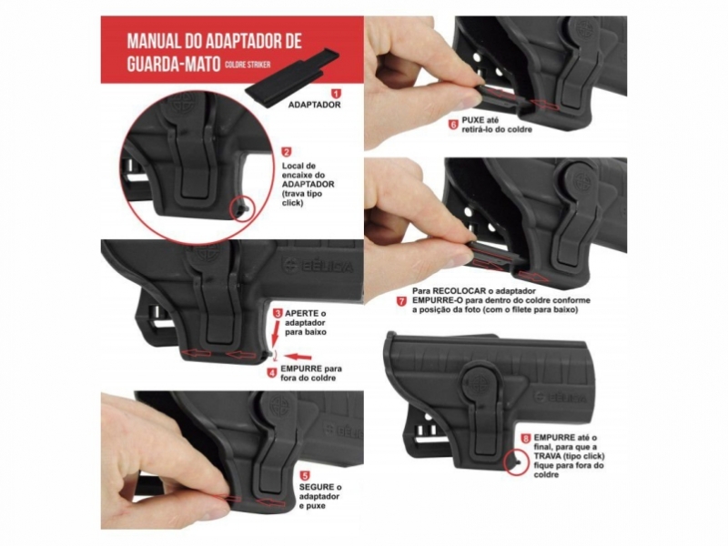 - Seu sistema de catraca rotativa possibilita a rotação do Coldre, facilitando o manuseio do equipamento;
