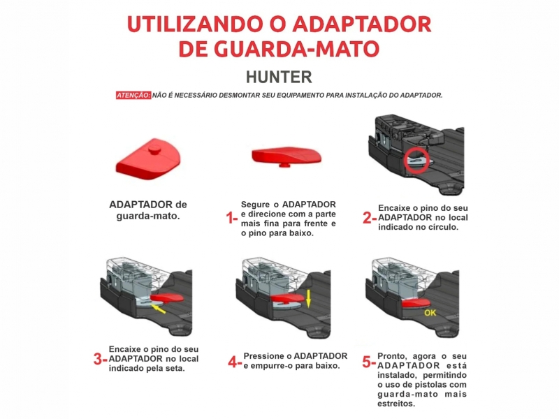 - Adaptador para ajuste da trava, compatibilidade com outros tamanhos de guarda-mato;