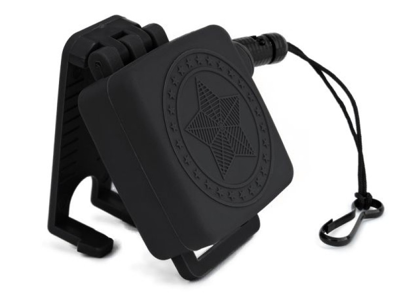 Possui gancho na ponta do cordão, para manter a arma em segurança;