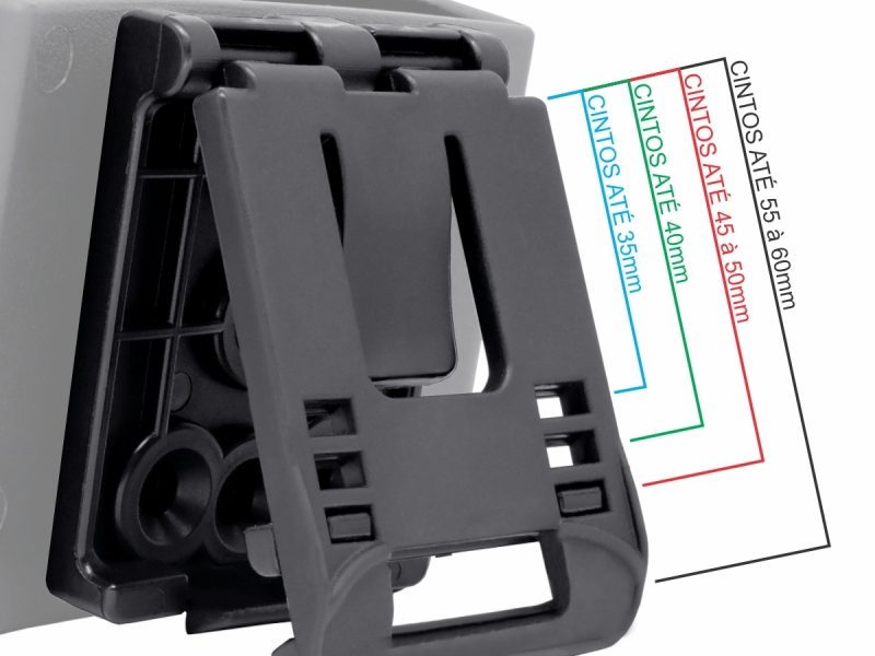 • Passador de cinto ajustável, de 35mm até 60mm;